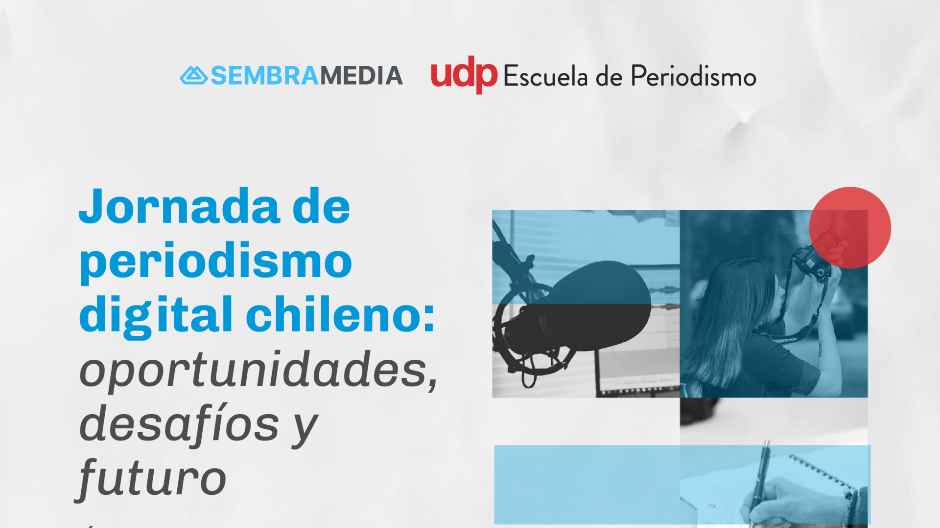 El encuentro se llevará a cabo el jueves 25 de septiembre a las 10:00 horas, en la Escuela de Periodismo UDP. La jornada consistirá en un conversatorio abierto al público, con transmisión en vivo a través del canal de YouTube de dicha Escuela de Periodismo.
